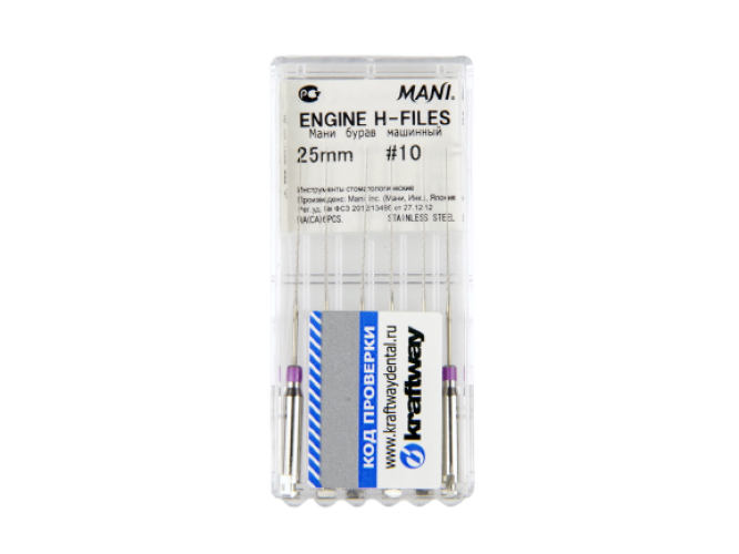 Engine H-Files №10 от Mani – это машинный инструмент для эндодонтической обработки узких и искривленных зубных каналов. Он незаменим при механической подготовке к пломбированию, обеспечивая высокую точность и эффективность.