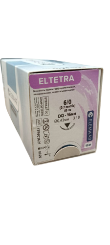 Мононить 60T4DQ16,режущая, политетрафторэтиленовая, неокраш 6/0 (0.7) 16мм, 45см ELTETRA шовный мате