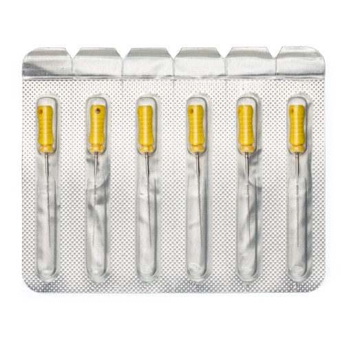 Стержень Н-файлов № 20 сделан из никель-хромовой нержавеющей стали, поэтому сочетает в себе прочность и гибкость. Точность манипуляций обеспечивается удобной пластиковой ручкой и силиконовым стоппером.